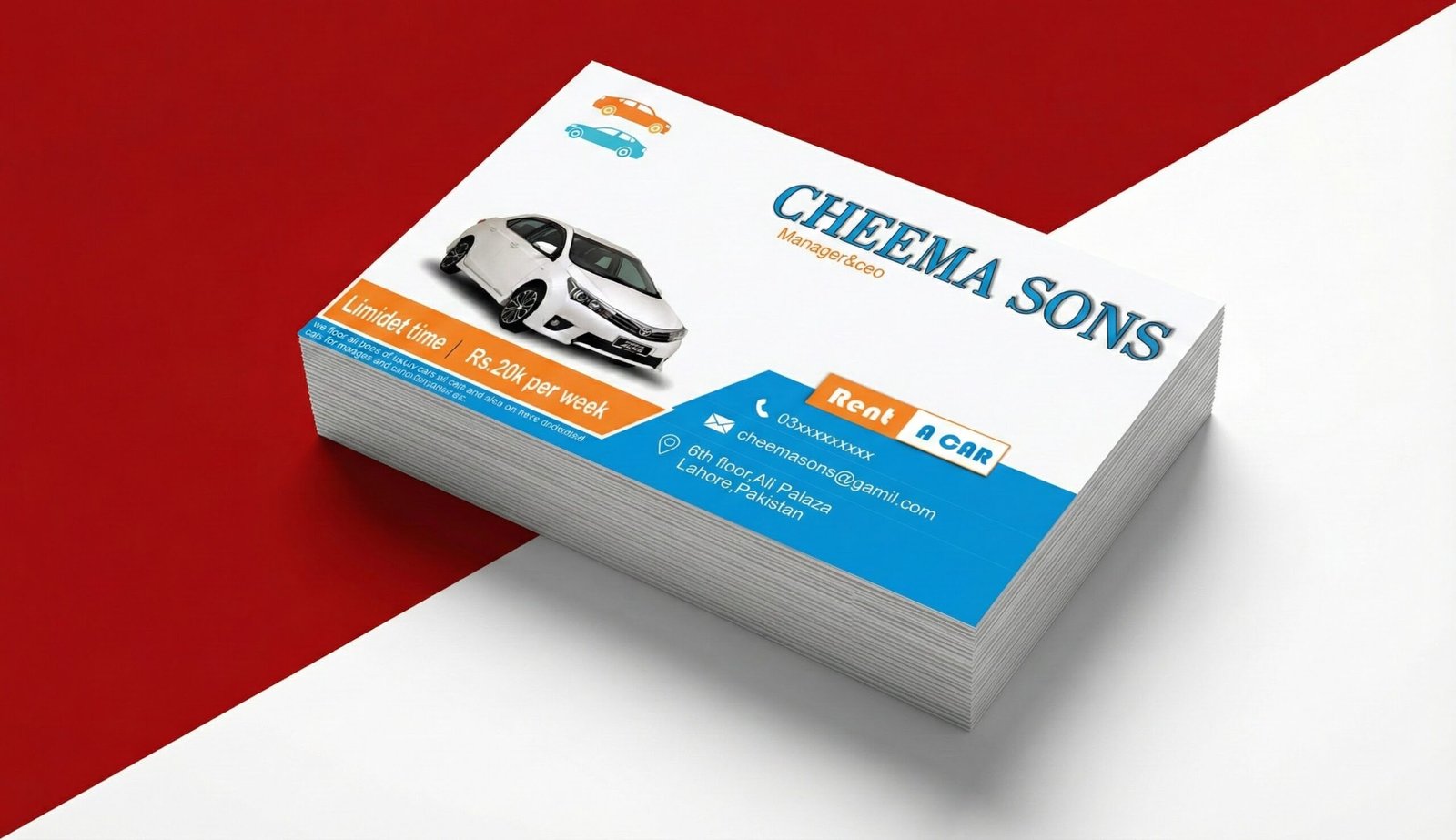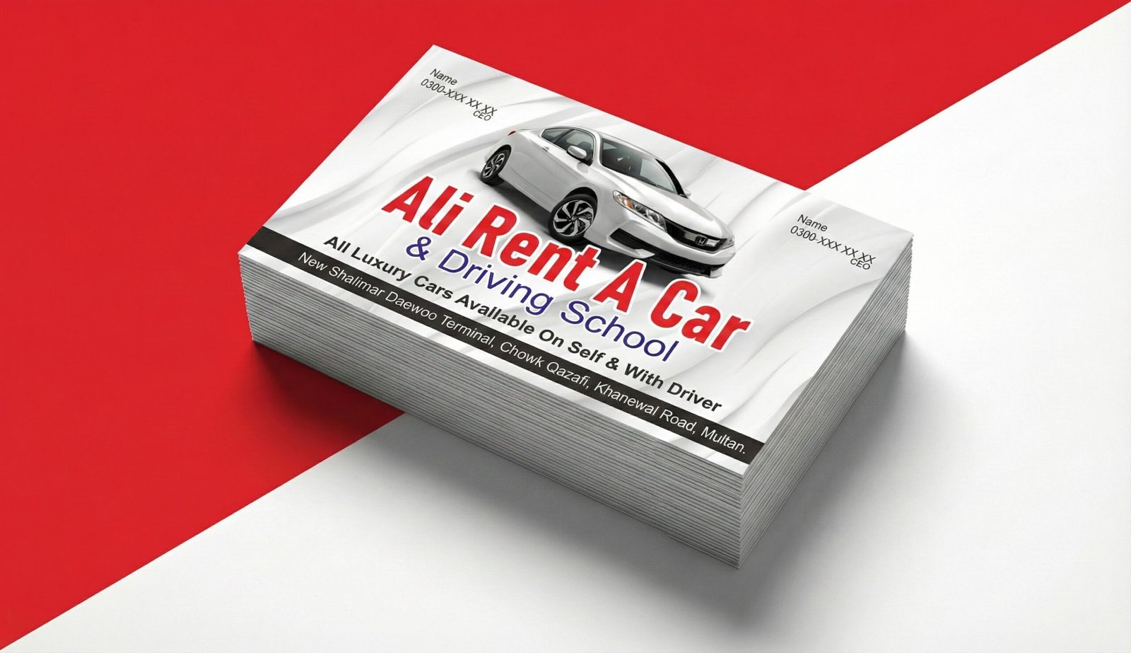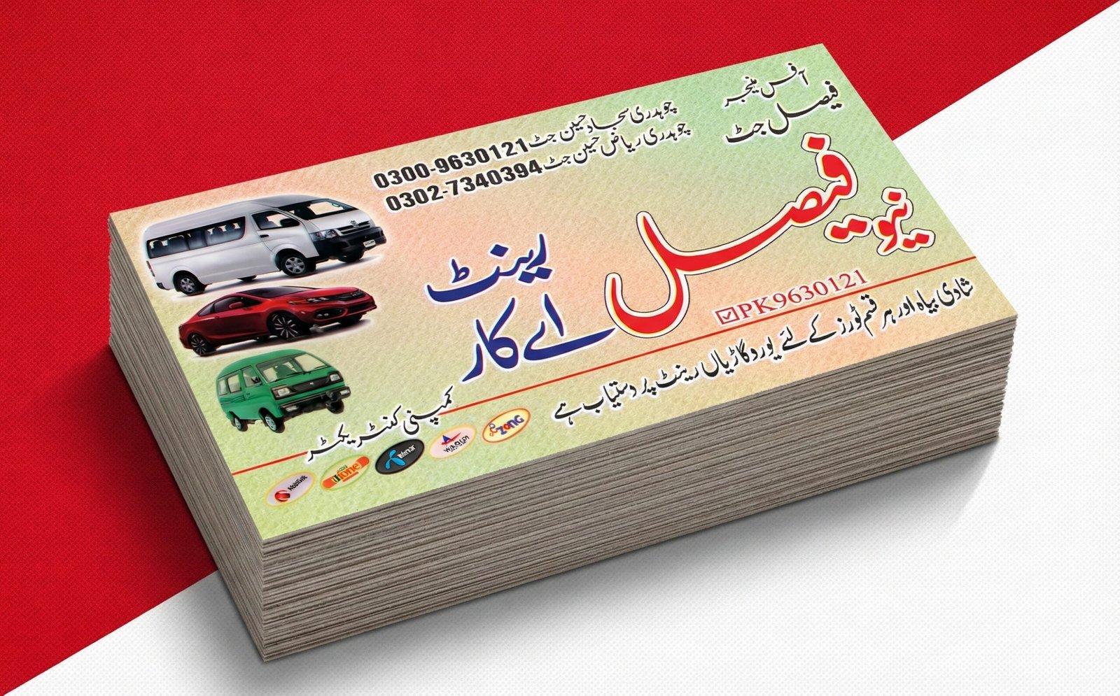Our custom Rent a Car visiting cards are designed specifically for car rental businesses offering services in both English and Urdu. Perfect for connecting with local customers, these business cards provide all the essential details with a professional, sleek design. Whether you own a luxury car rental service or a budget-friendly option, our high-quality Urdu visiting cards help your business stand out.