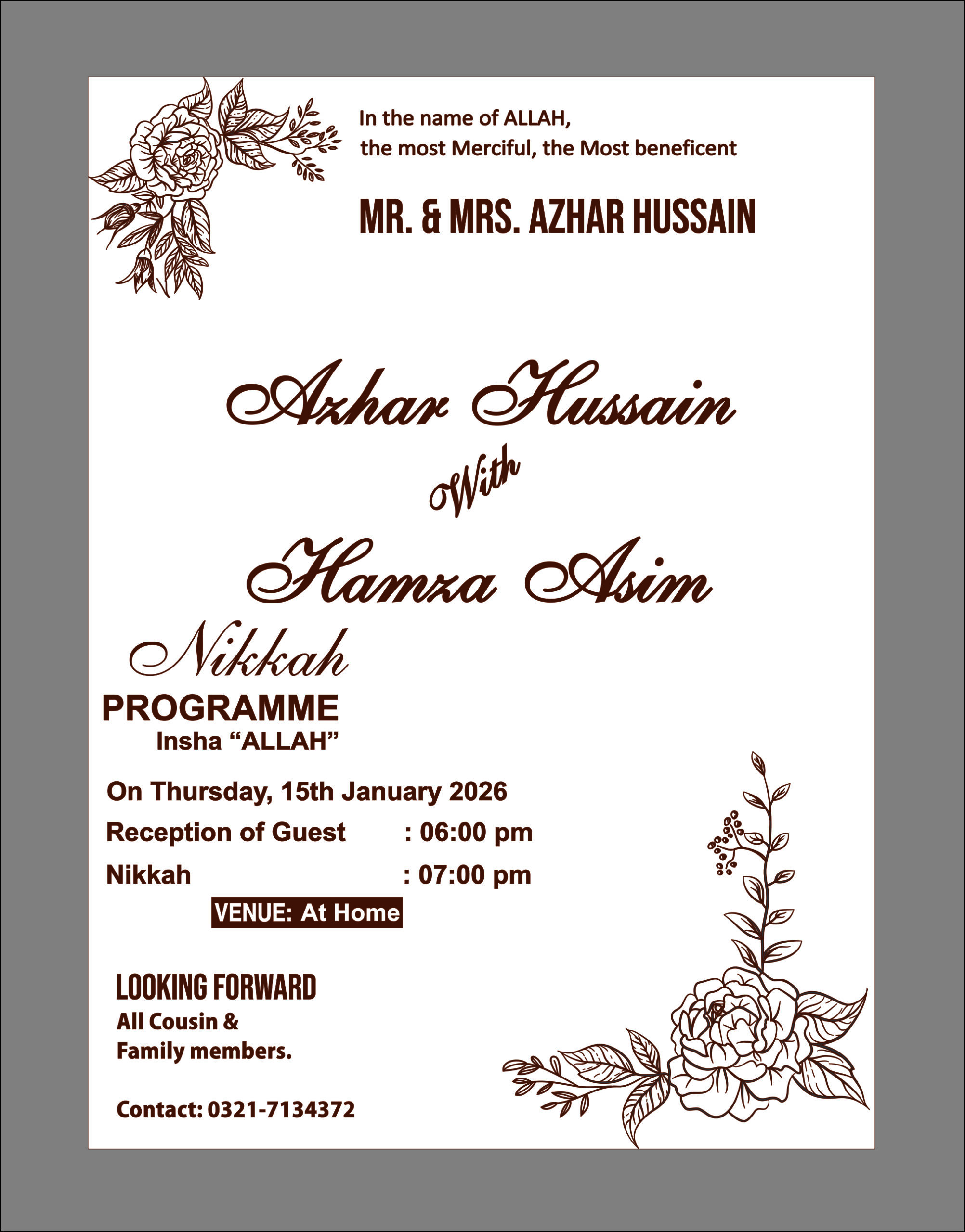 Malik Art can print this card on smooth, textured or premium card stock with professional finishing options and envelope matching. If you need quantity guidance, paper recommendations or urgent printing support, send your event details on WhatsApp for a quick quotation.