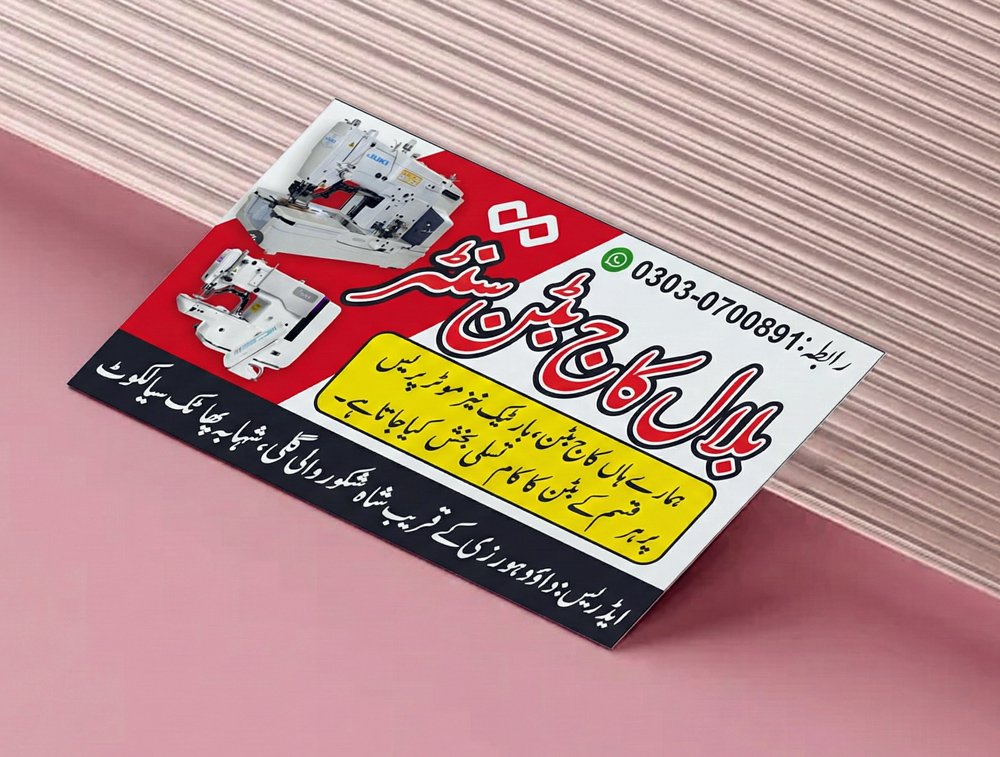 Urdu Visiting Card Design for Stitching & Machine Workshop